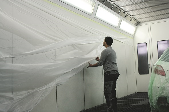 Spray booth masking film ist eine 4 Lagen Schutzfilm für Spritzkabinenwänden.