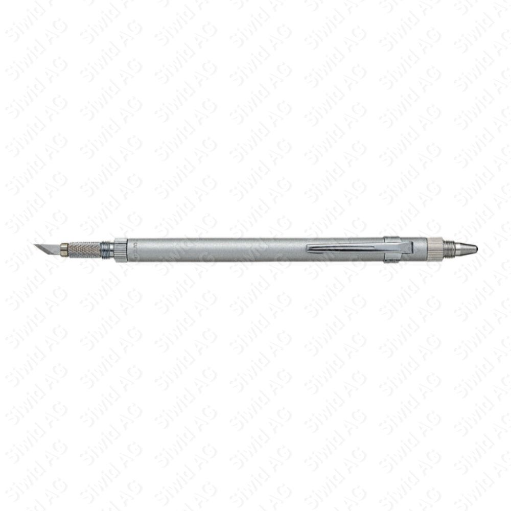 Runder Schaft aus Aluminium mit Clip, doppelseitig mit Präzisionsklinge und einer Nadel.
