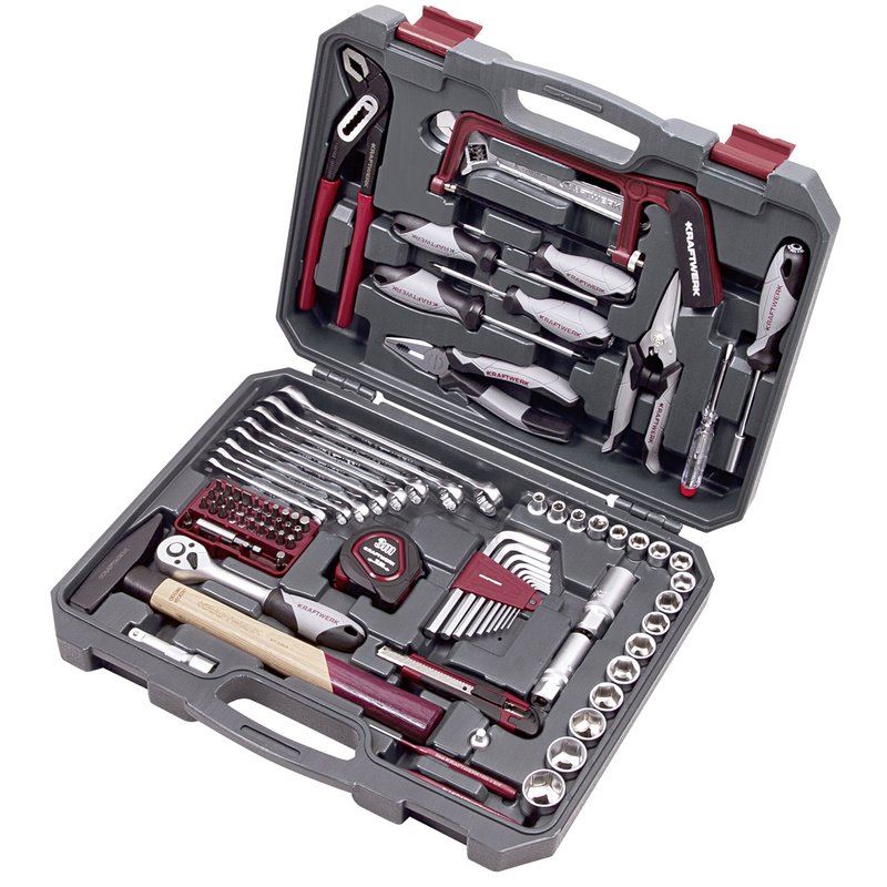 Der 90-teilige Kraftwerk Basic Line Universal-Werkzeugkoffer ist ideal für Heim, Hof, Freizeit, Camping oder auch für die erste Wohnung geeignet. Ausgestattet mit den wichtigsten Hand-Werkzeugen wie verschiedene Zangen, Schraubendreher, Ring-Maulschlüssel, Hammer, Rollbandmaß und einer 3/8 Zoll Umschaltknarre mit kompakten Ratschenkopf sowie passende Stecknüsse können die vielfältigsten Arbeiten damit erledigt werden. Eine solide Grundaustattung an Werkzeugen. Praktisch im Koffer verstaut und flexibel einsetzbar. Die Werkzeuge sind übersichtlich und griffbereit im Koffer angeordnet. Universal-Werkzeugkoffer 90-tlg., Kraftwerk Basic Line 204.104.100